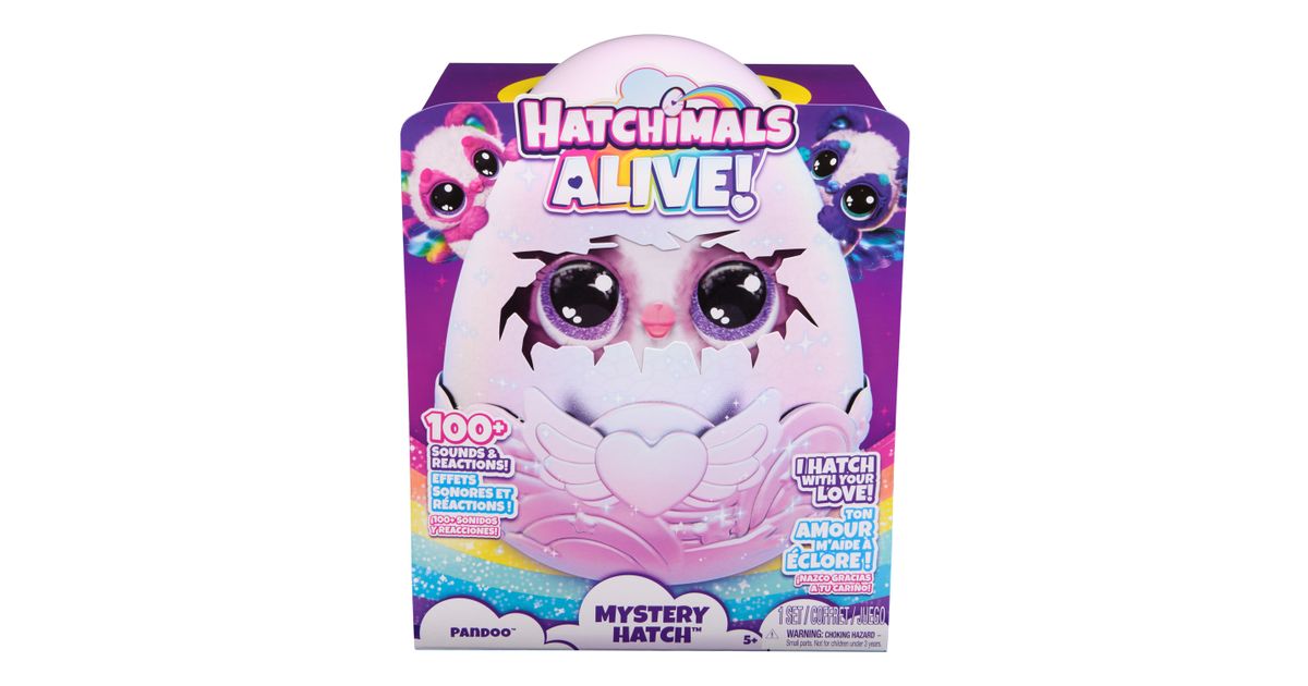 Midagi tõeliselt maagilist on lõpuks kohal – salapärane interaktiivne mänguasi Hatchimals Alive Mystery Hatch! Hatchimals on valmis kooruma, kui oma hoolitsusega tal seda teha aitad! Lummav ja kõikehaarav koorumise kogemus: imeline valgusmäng, müstiline auruefekt ja üle 100 erineva heli- ja reaktsiooniefekti. Sisesta Hatchi-tiivakesed muna külge ja kuuled südamelööke! Paita, kaisuta ja patsuta muna, kõiguta teda süles ja hüpita, et aitada muna sees peituval tegelasel kooruda. Muna rapub ning näed valgusmängu ja kuuled helisid muna seest. Kui muna tunneb, et on saanud piisavalt hoolt ja armastust, hakkab ta helendama vikerkaarevärvides ning tekib maagiline aur, mis imbub välja muna seest, mis omakorda tekitab ootusärevust. Hatchimal koorub lauldes Hatchi-Birthday sünnipäevalaulu! Hatchimaliga mängimiseks on lõputult võimalusi – toida ja jooda mängult, mängi peitusmängu, õpeta teda rääkima, kallistage ja kaisutage ja palju muud. Nad oskavad isegi oma tiivakesi liigutada ja tantsida!