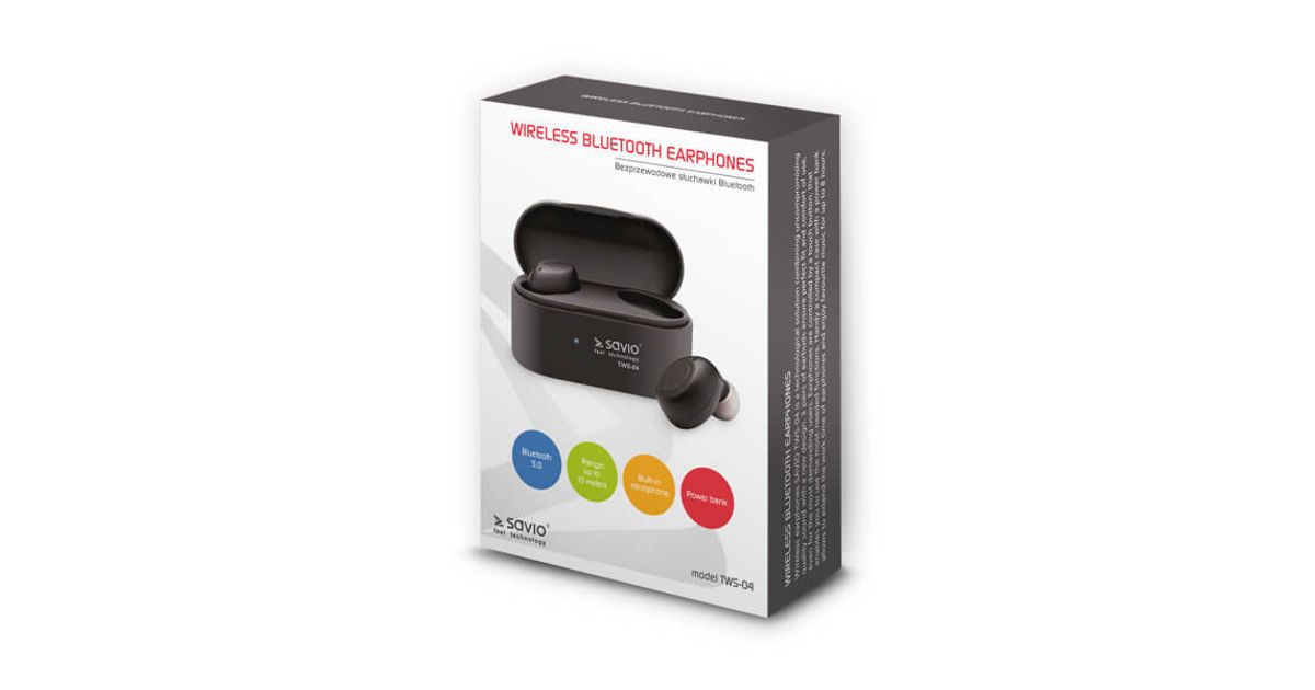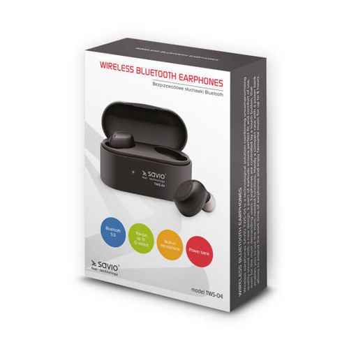 Headphones SAVIO TWS-04 (bluetooth; Bluetooth, wireless; with built-in microphone; black color
