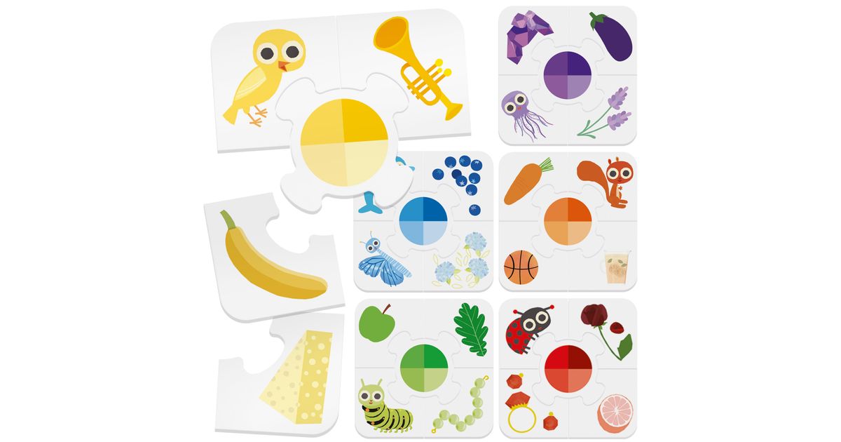 Lihtne ja lõbus mäng esemete sobitamiseks erinevate värvidega. Lapsed avastavad põhi- ja sekundaarvärve ning nende erinevaid toone. Mängu hõlbustab ka asjaolu, et esemete värvid on tõelised! Oskused: värvide äratundmine; eristada erinevaid värve ja toone; visuaalse mälu treenimine.
