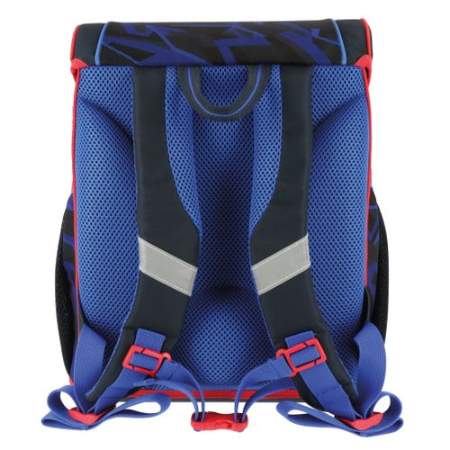 Eigengewicht unter 900g; ergonomisch geformte Rückenpolster; verstellbare Schultergurte; höhenverstellbarer Brustgurt; angenehme Passform; Orafol Reflexmaterialien; Klickschloss mit Reflektor; geräumiges Innenfach mit separatem Bücherfach; 1 Fronttasche; 2 Seitentaschen mit Gummizug; stabile Bodenplatte; Befüllteile: Sportbeutel; unbefülltes Schüleretui mit 2 Klappen ; Faulenzer oval; Maße: 37x31x22cm; Gewicht: unter 1kg; Volumen: ca. 17l; Material: Polyester.