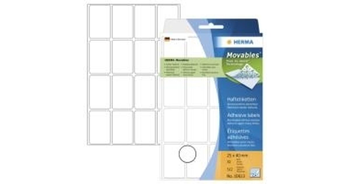 HERMA 10613, Valge, Ümarate nurkadega ristkülik, Paber, Saksamaa, 25 mm, 40 mm
