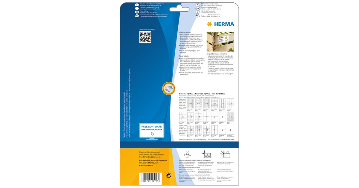 HERMA 10911, Valge, Iseliimuv printerisilt, A4, Paber, Laser/tint, Püsifilter