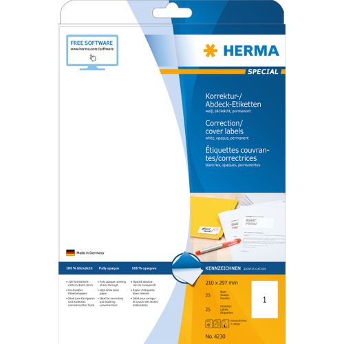 HERMA 4230, Valge, Iseliimuv printerisilt, A4, Paber, Laser/tint, Püsifilter