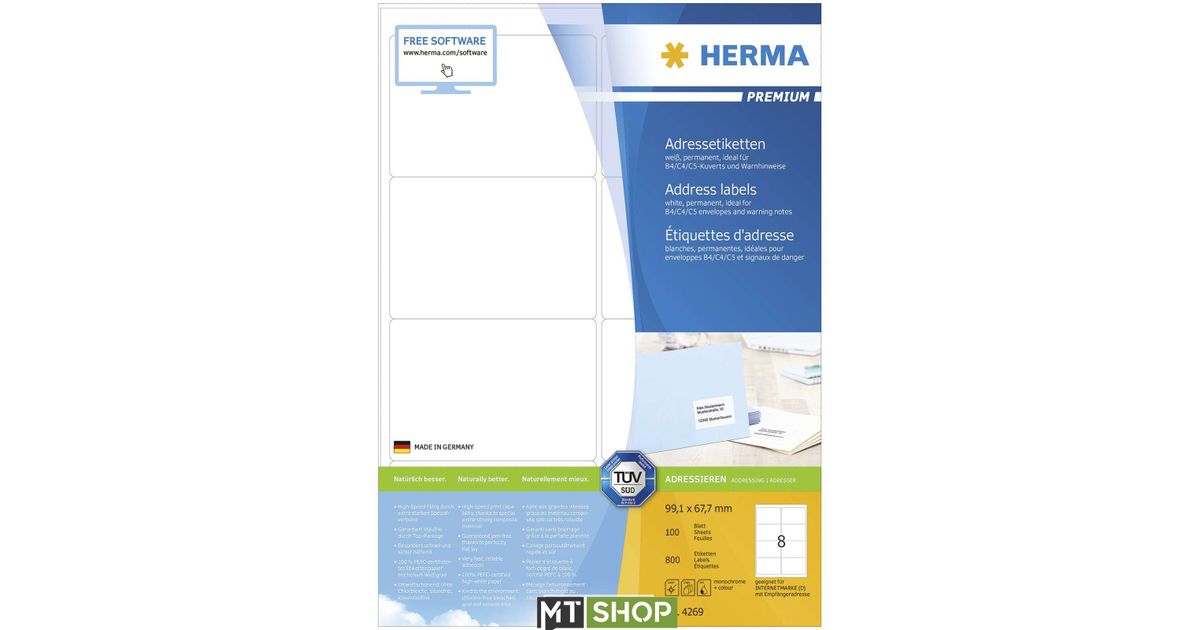 HERMA 4269, Valge, Iseliimuv printerisilt, A4, Paber, Laser/tint, Püsifilter