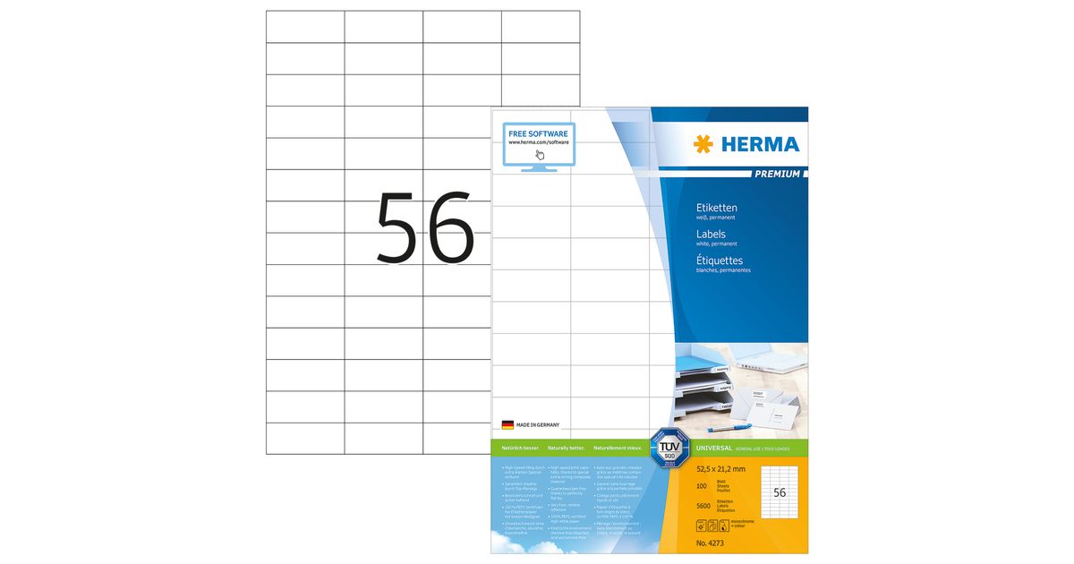 HERMA 4273, Valge, Iseliimuv printerisilt, A4, Paber, Laser/tint, Püsifilter