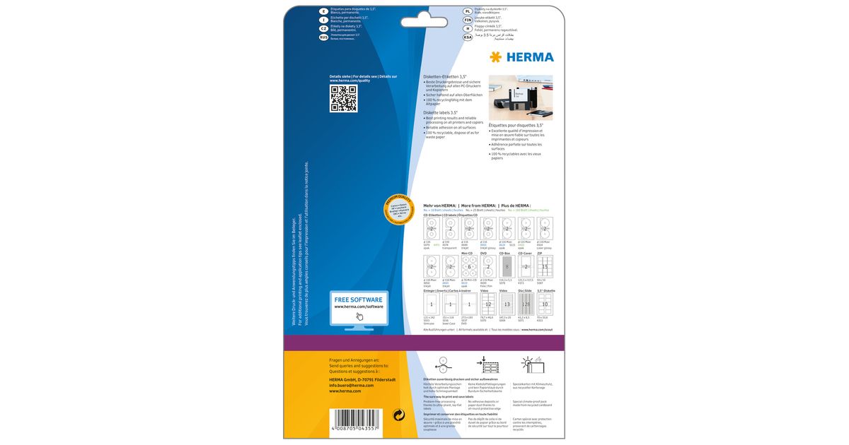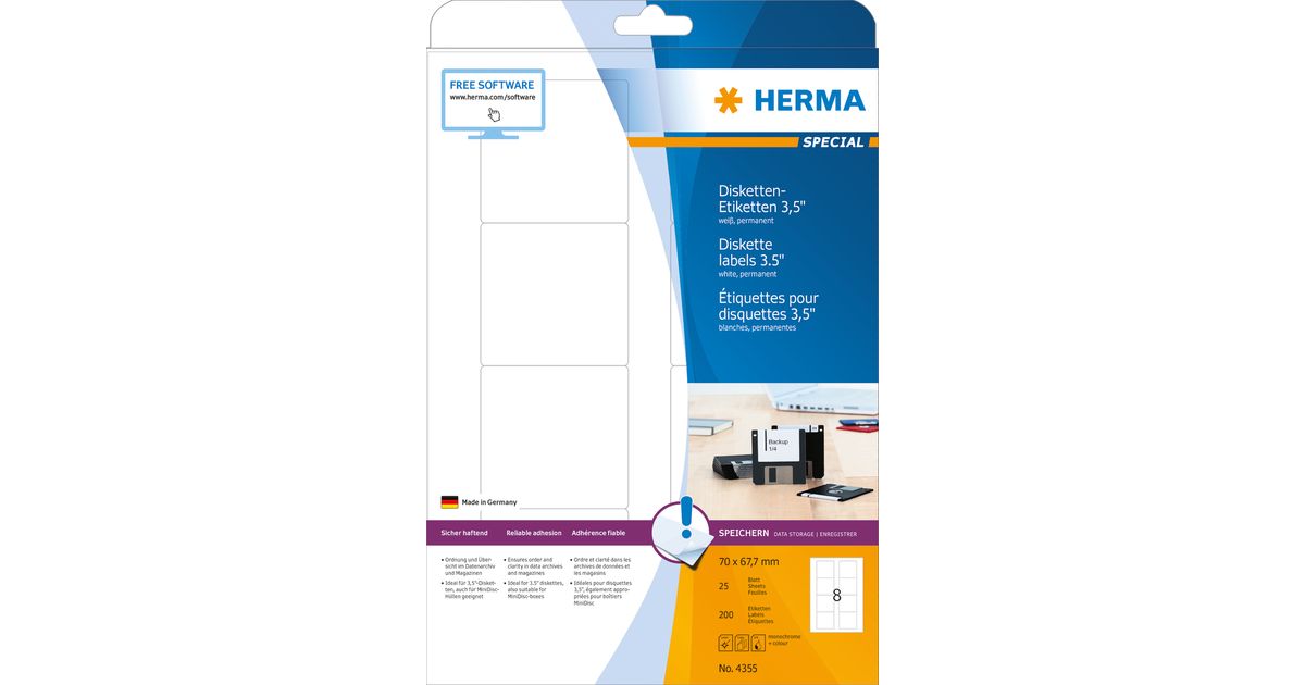 HERMA 4355, Valge, Iseliimuv printerisilt, A4, Paber, Laser/tint, Püsifilter
