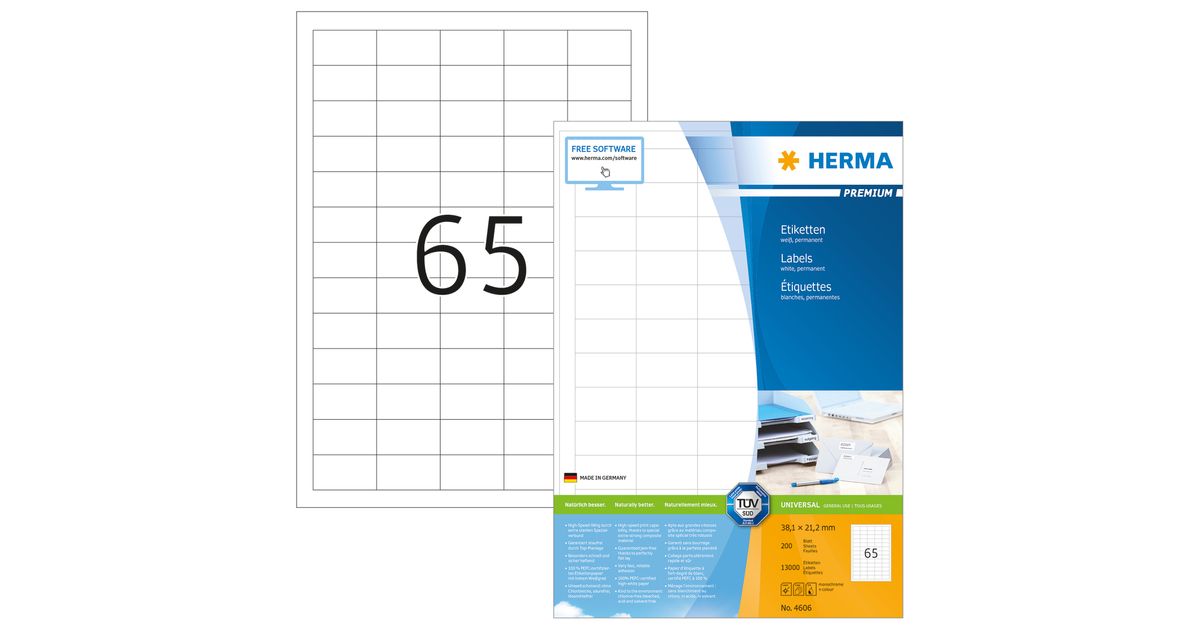 HERMA 4606, Valge, Iseliimuv printerisilt, A4, Paber, Laser/tint, Püsifilter