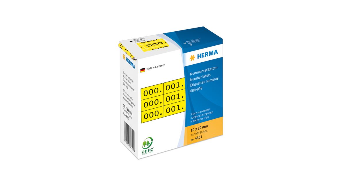 HERMA 4801, Must, Kollane, Paber, Saksamaa, 10 mm, 22 mm, 3000 tk