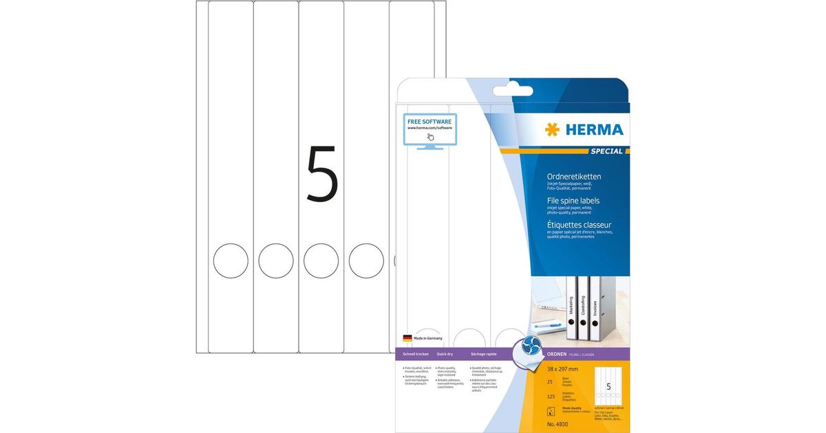 HERMA 4830, Valge, Ümarate nurkadega ristkülik, Püsifilter, Paber, Matt, Tint