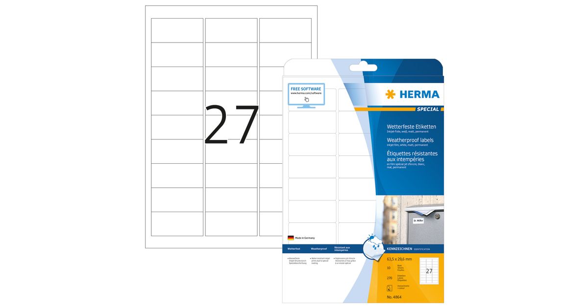 HERMA 4864, Valge, Iseliimuv printerisilt, A4, Tint, Püsifilter, Matt