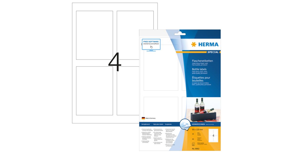 HERMA 8882, Valge, Iseliimuv printerisilt, A4, Paber, Tint, Püsifilter