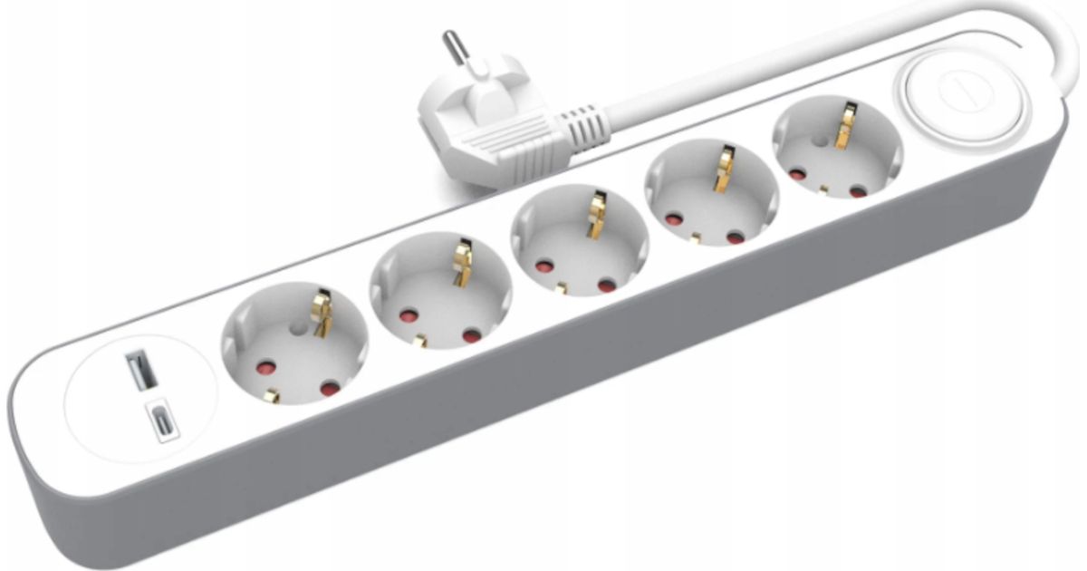 HOME EXTENSION CORD 5x SOCKETS 3m WITH SWITCH 1x USB-A 1x USB-C