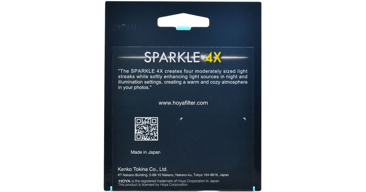 Hoya Sparkle filter kasutab uut mitmekihilist vääristust. Sparkle tekitab jäädvustavatele fotodele huvitava sädeleva efekti. See filter on käepärane tarvik just nendel hetkedel, kui soovid vahelduseks hoopis midagi teistsugust ja loomingulisemat teha, näiteks astrofotograafina. Samuti on Hoya Sparkle filtrit hea kasutada, kui on soov saavutada fotodel 90ndate stiili.