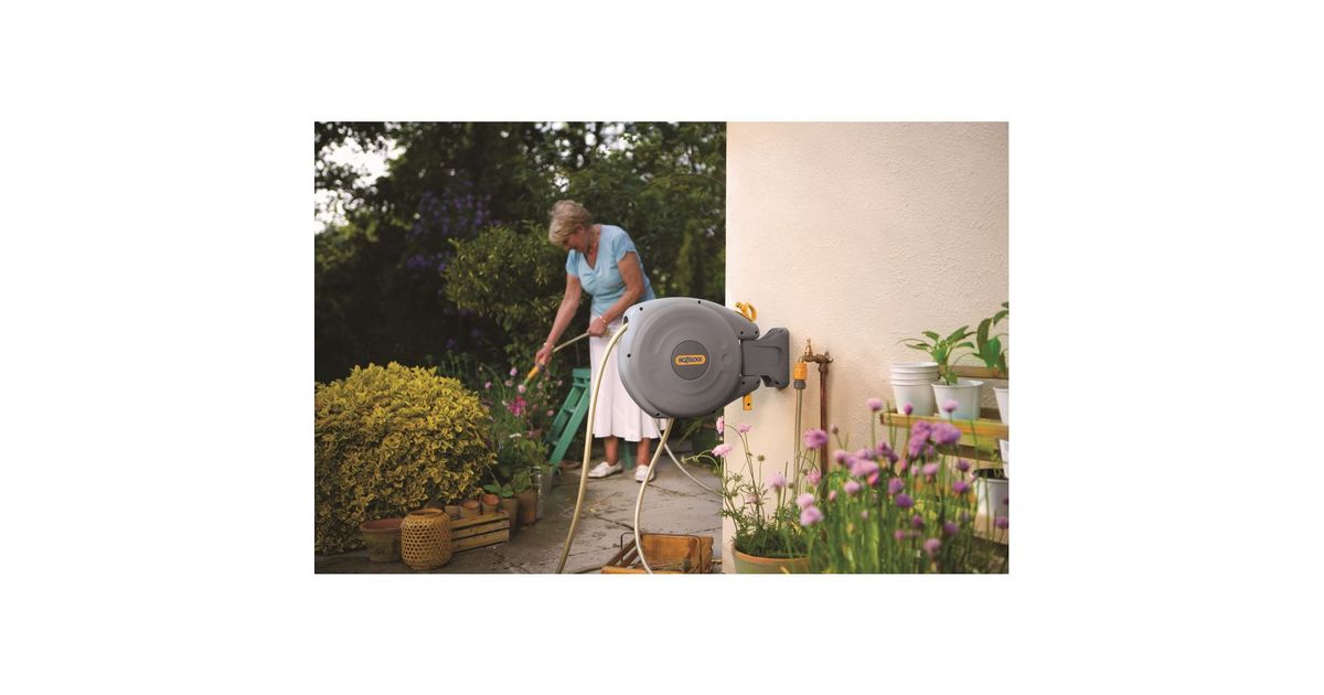 Hozelock 2485, Seinale paigaldatud rull, Automaatne, Funktsionaalne, Hall, PVC, Seinale paigaldatud