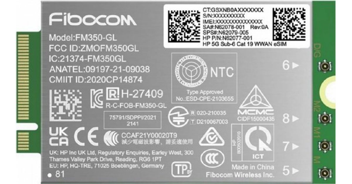 HP 5G Modem m.2 WWAN 4G/5G Sub-6 GHz FM350-GL Mobile Broadband Cellular (compatible with WWAN-ready EliteBook 830 835 840 845 860 865 1040 G11, x360 G11, ZBook Firefly Fury Power 14 16 G11 G11A)
