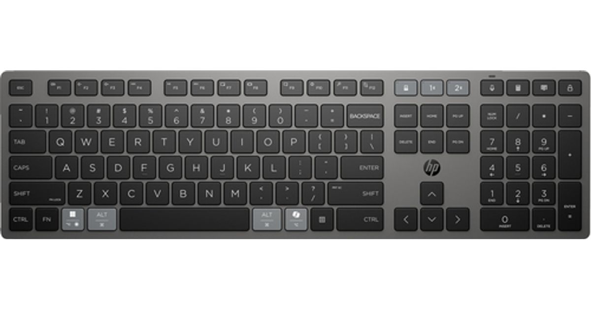 HP 725 - Tastatur - multifunktional, wiederaufladbar, betrieben mit Superkondensator - full size - kabellos - 2.4 GHz, Bluetooth - QWERTZ - Deutsch - Dämmerungsschwarz (9T5B2AA#ABD