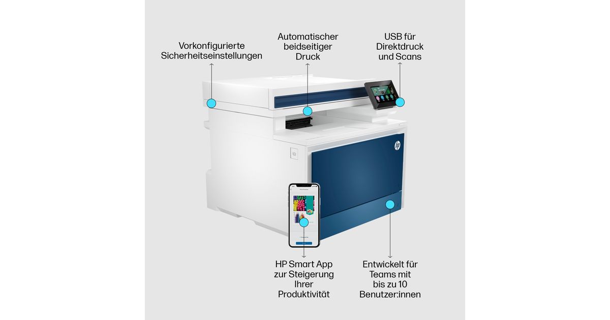 HP Color LaserJet Pro MFP 4302dw Printer, Color, Tiskárna pro Small medium business, Print, copy, scan, Wireless; Print from phone or tablet; Automatic document feeder, Laser, Värviline printimine, 600 x 600 DPI, A4, Otseprintimine, Sinine, Valge