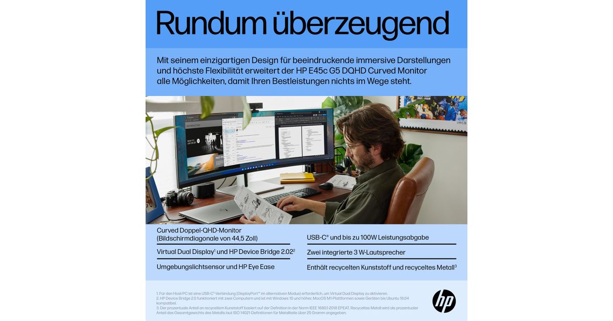HP E45c G5, 113 cm (44.5"), 5120 x 1440 pikslit, DQHD, 3 ms, Must
