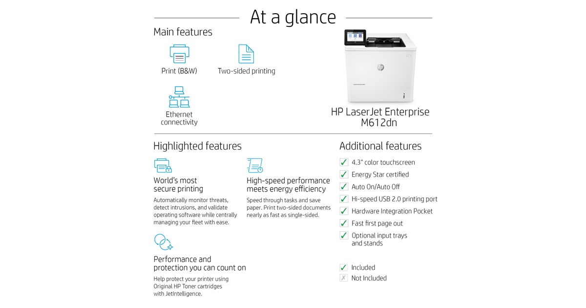 HP LaserJet Enterprise M612dn 1200 x 1200 DPI A4 WiFi