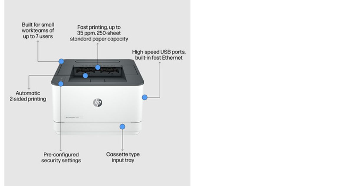 HP LaserJet Pro 3002dw Printer, Black and white, Tiskárna pro Small medium business, Prindi, Two-sided printing, Laser, 1200 x 1200 DPI, A4, 33 lk/min, Kahepoolne printimine, Hall, Valge