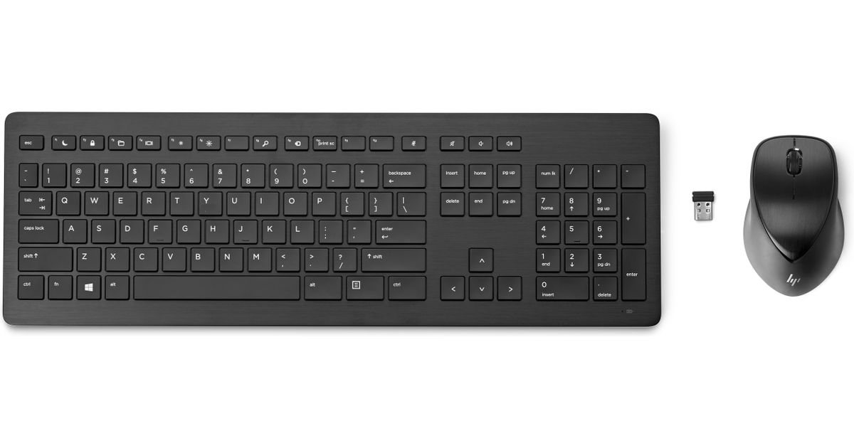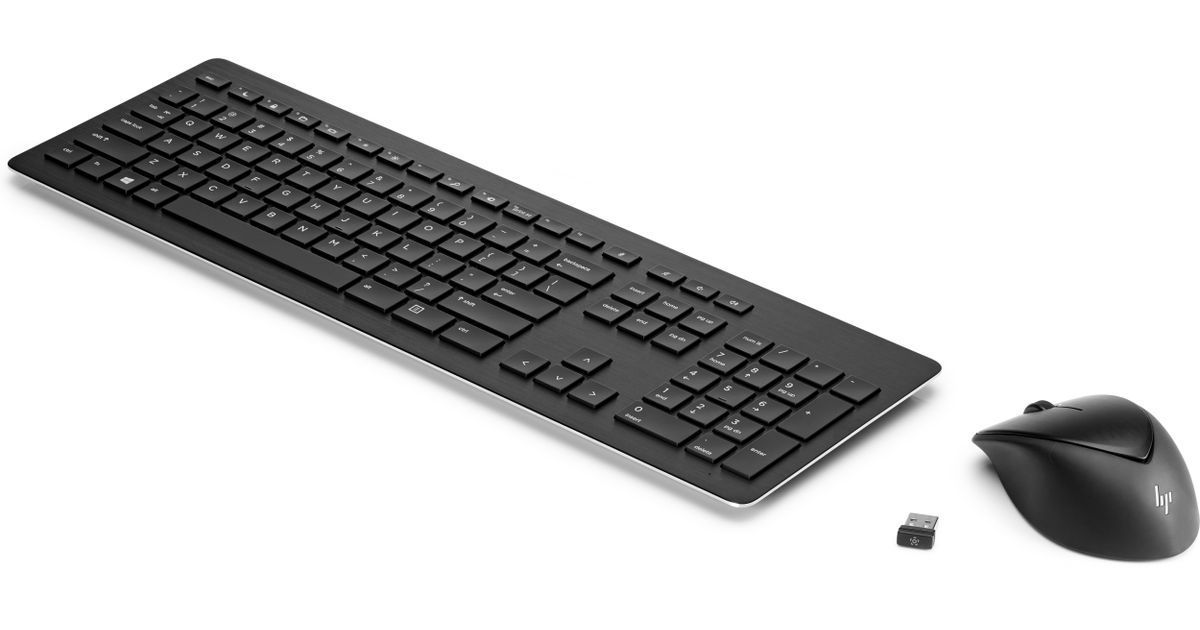 HP Wireless Rechargeable 950MK Mouse and Keyboard, Täissuuruses (100%), Raadioside, Mehaaniline klahvlüliti, Must, Hiir kaasa arvatud