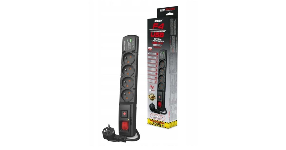 HSK Data Acar F4 - 4 nests, 1.5m, USB A+C, black