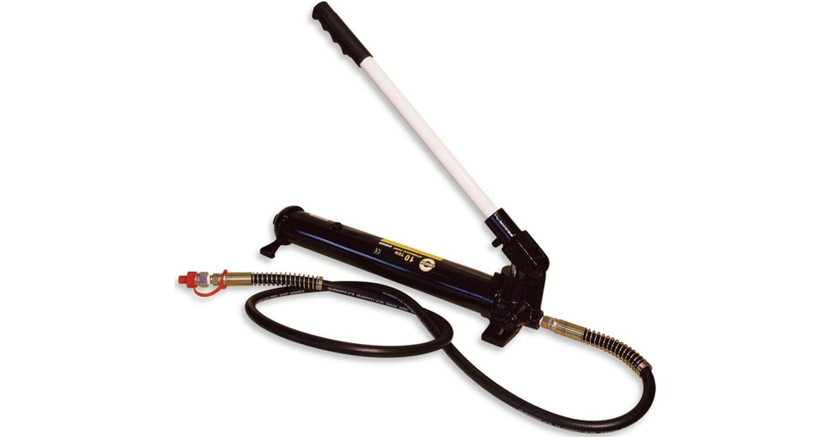 Hüdrauliline käsipump presside. kereõgvendustööriistade ja hüdrauliliste tõmmitsate silindritele. Töösurve 700 bar. Õli maht 770 cc. Vooliku pikkus 1818 mm. Kiirühendusliitmik 1/4”-18NPTF -> Ø10 mm. isane.