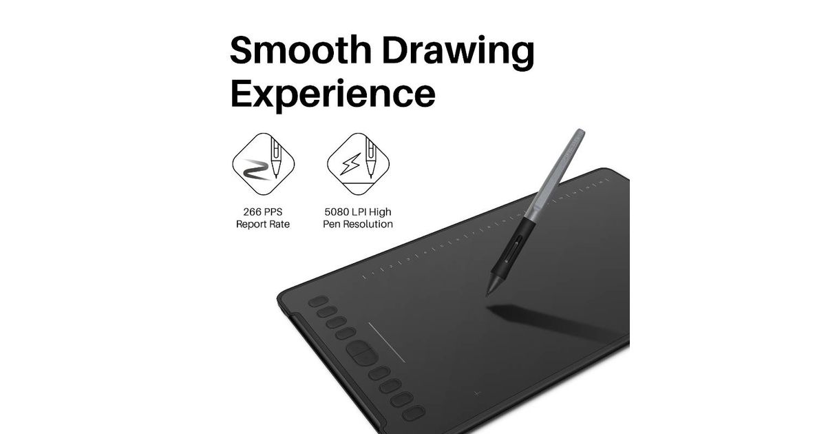 HUION H1161, Juhtmega ühendatud, 5080 lpi, 279,4 x 174,6 mm, USB, 1 cm, Must
