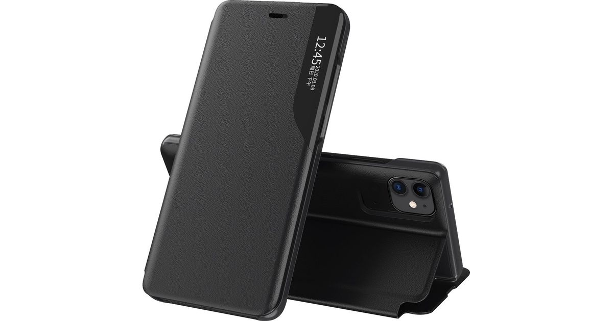 Hurtel Eco Leather View Case elegantne klappkaane ja aluse funktsiooniga ümbris iPhone 13 mini mustale