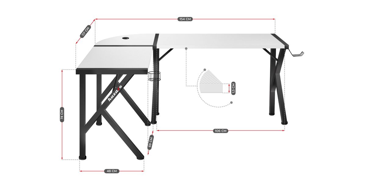 Huzaro Hero 6.3, Nurk, L-kujuline, Süsinikkiud, Roostevaba teras, Valge, 1540 mm