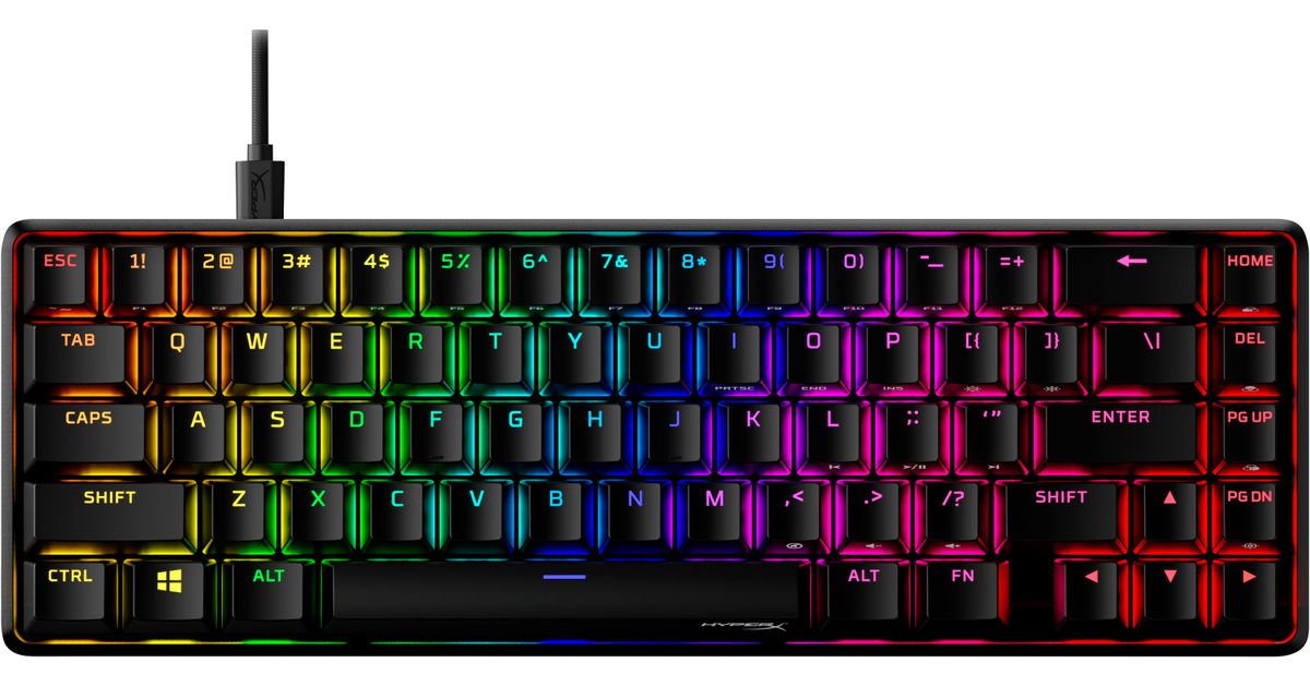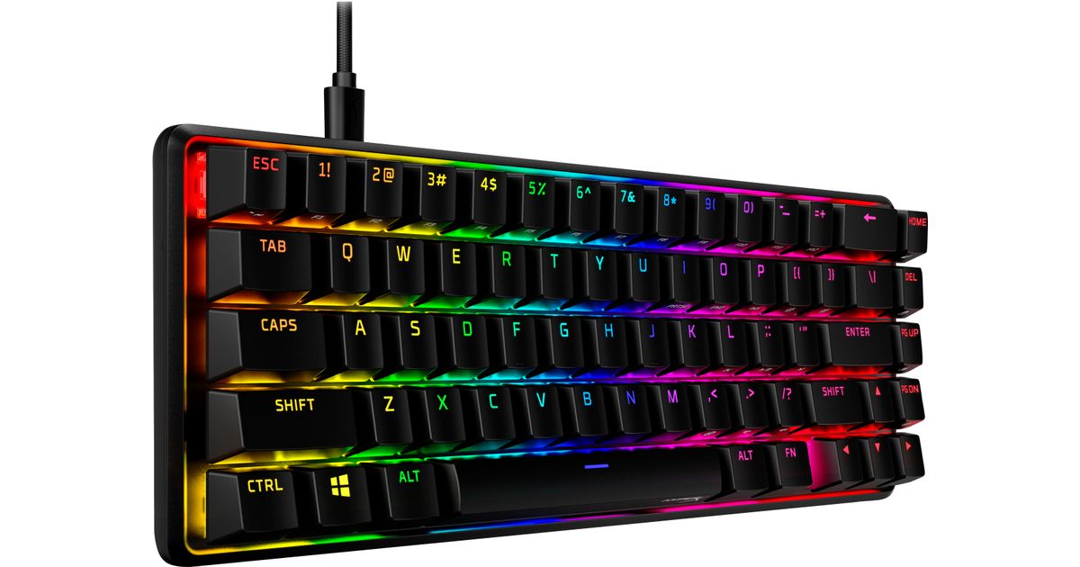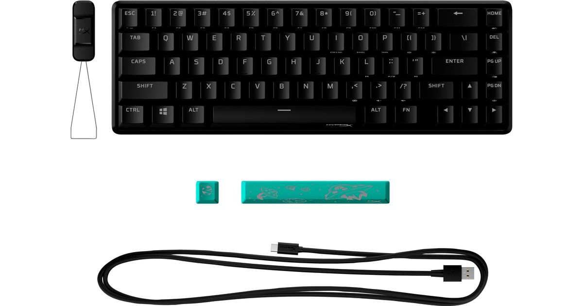 HyperX Alloy Origins 65 - mehaaniline mänguklaviatuur - HX Aqua (USA paigutus), 65%, USB, Mehaaniline klahvlüliti, RGB LED, Must