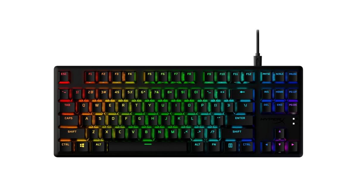 HyperX Alloy Origins Core PBT HX Aqua – mehaaniline mänguklaviatuur, Tenkeyless (80–87%) numbriteta, USB, Mehaaniline klahvlüliti, QWERTY, RGB LED, Must