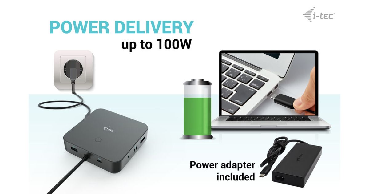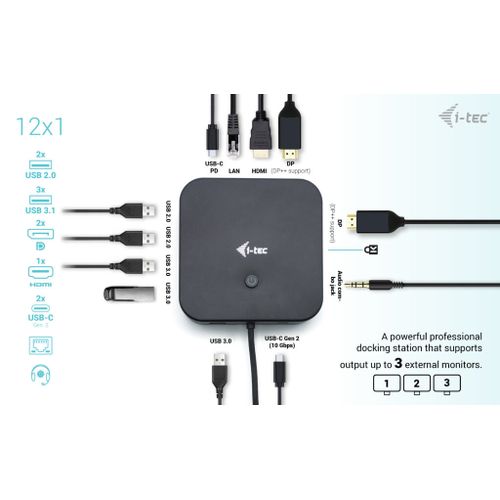 i-tec C31TRI4KDPDPRO100, Juhtmega ühendatud, USB 3.2 Gen 1 (3.1 Gen 1) Type-C, 100 W, 10,100,1000 Mbit/s, Must, 10 Gbit/s