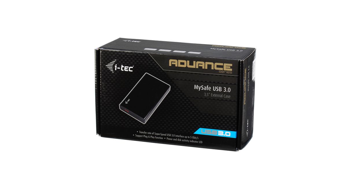 i-tec MYSAFE35U401, Kõvaketta boks, 3.5", Jada ATA, Jada ATA II, Jada ATA III, 5 Gbit/s, USB ühilduvus, Must, Metallik