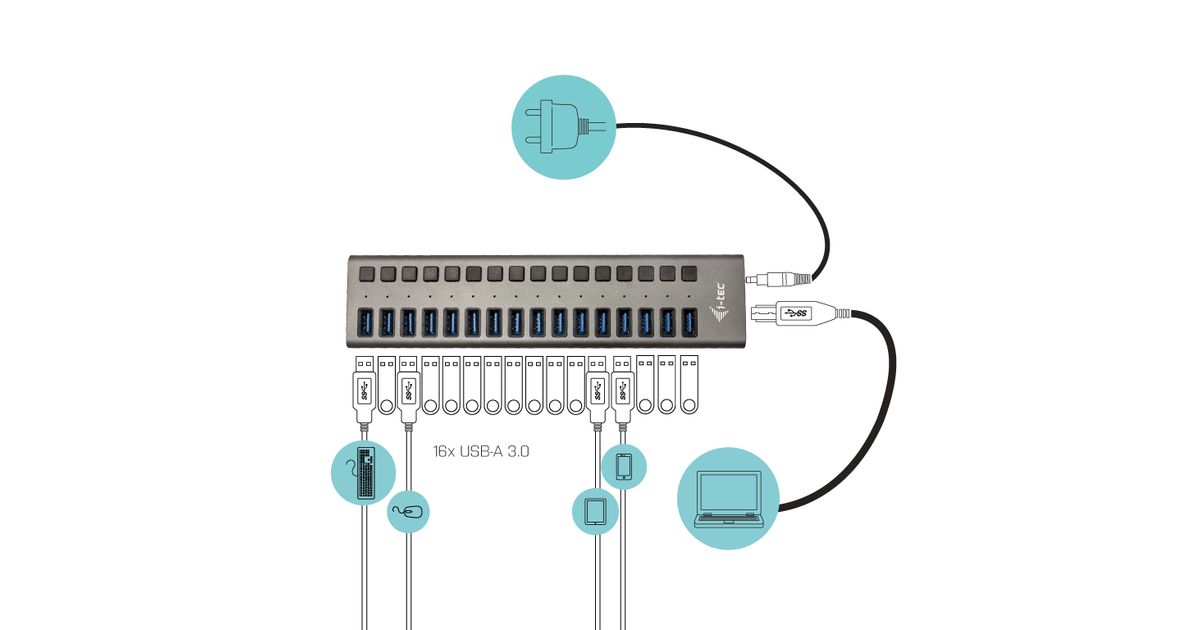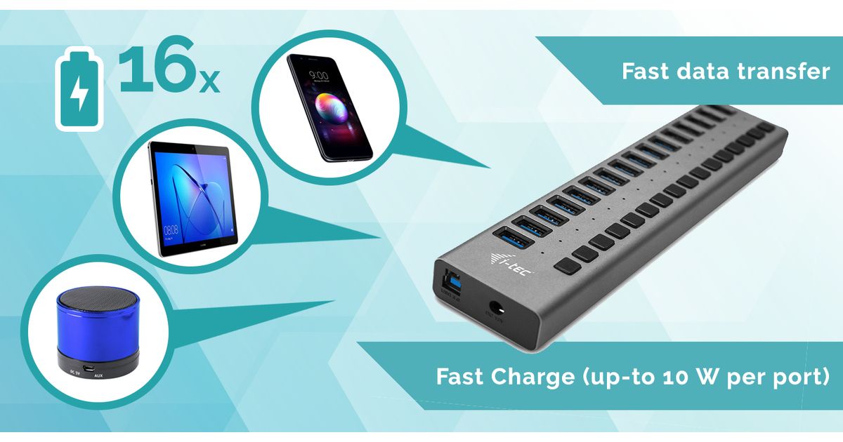 i-tec U3CHARGEHUB16 mobiilseadme laadija Hall Hoonesisene