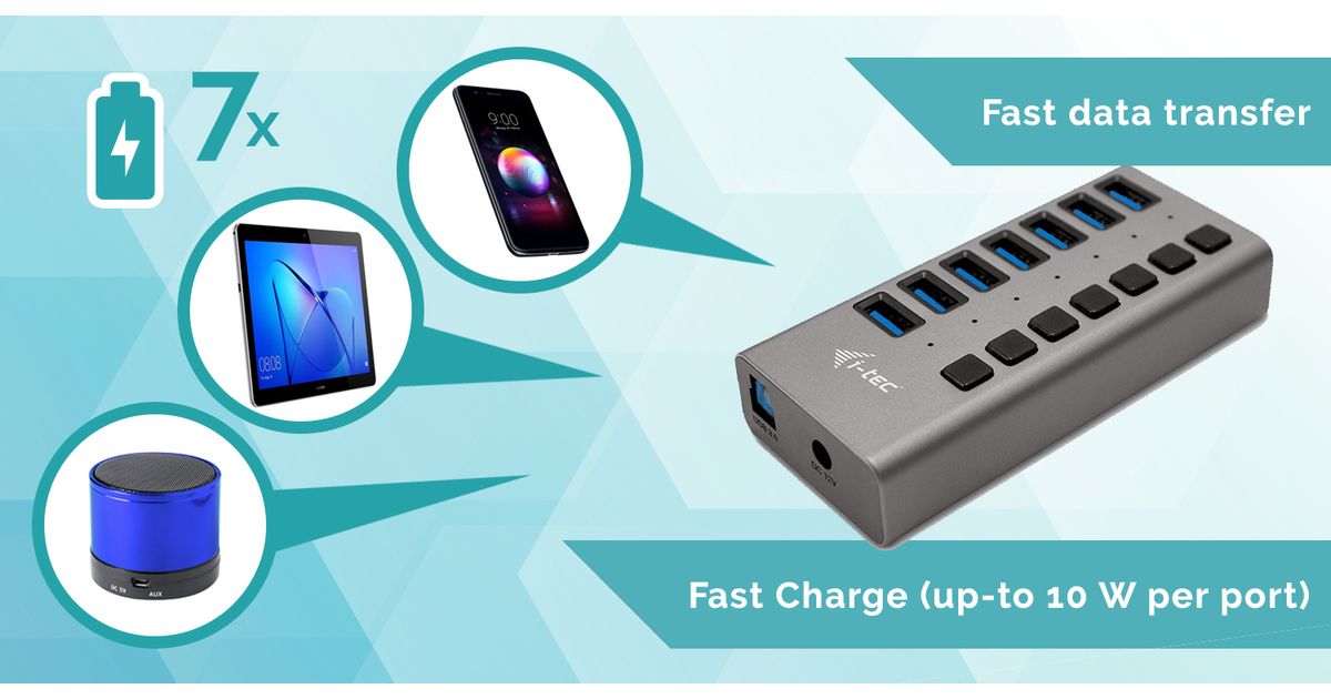 i-tec U3CHARGEHUB7 mobiilseadme laadija Hall Hoonesisene
