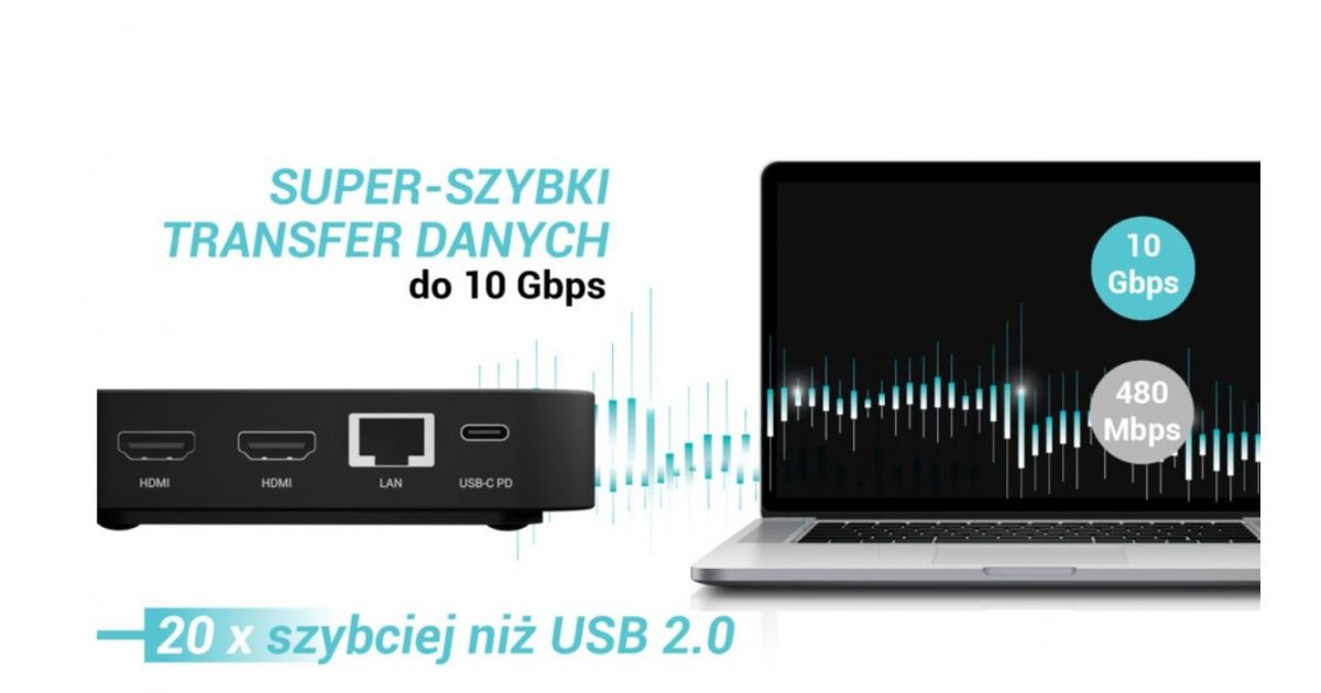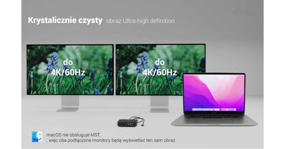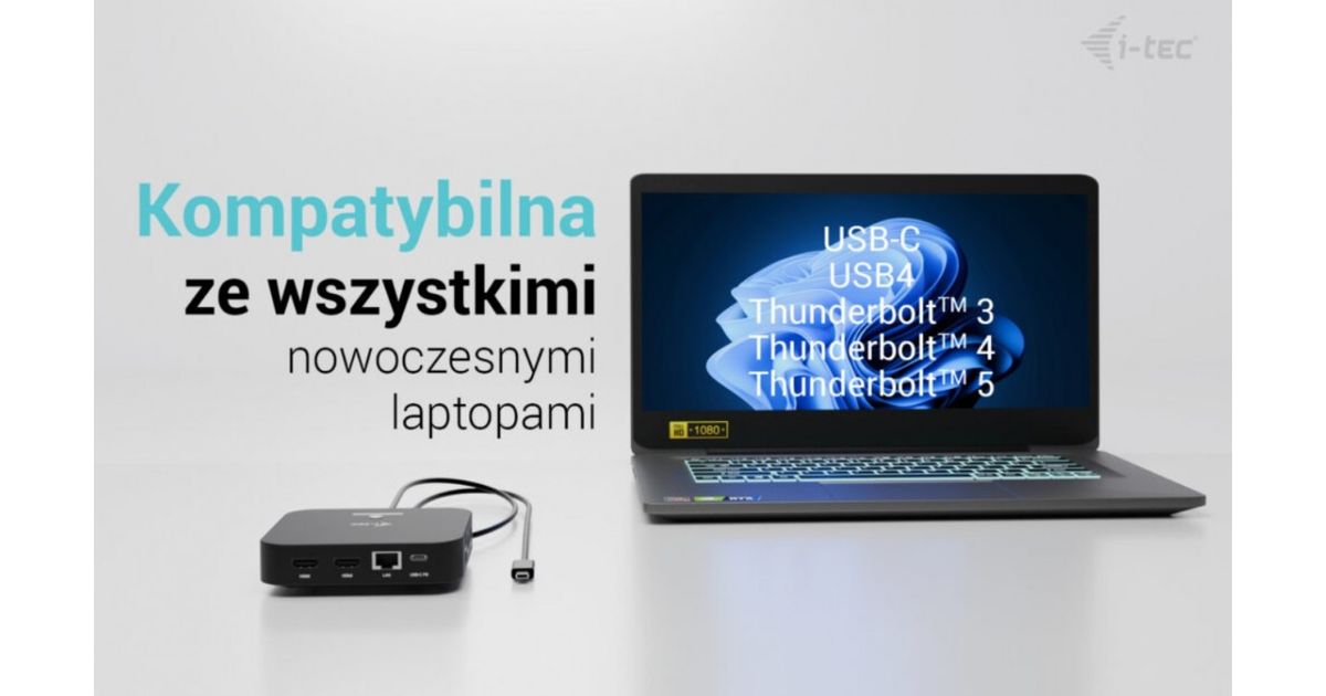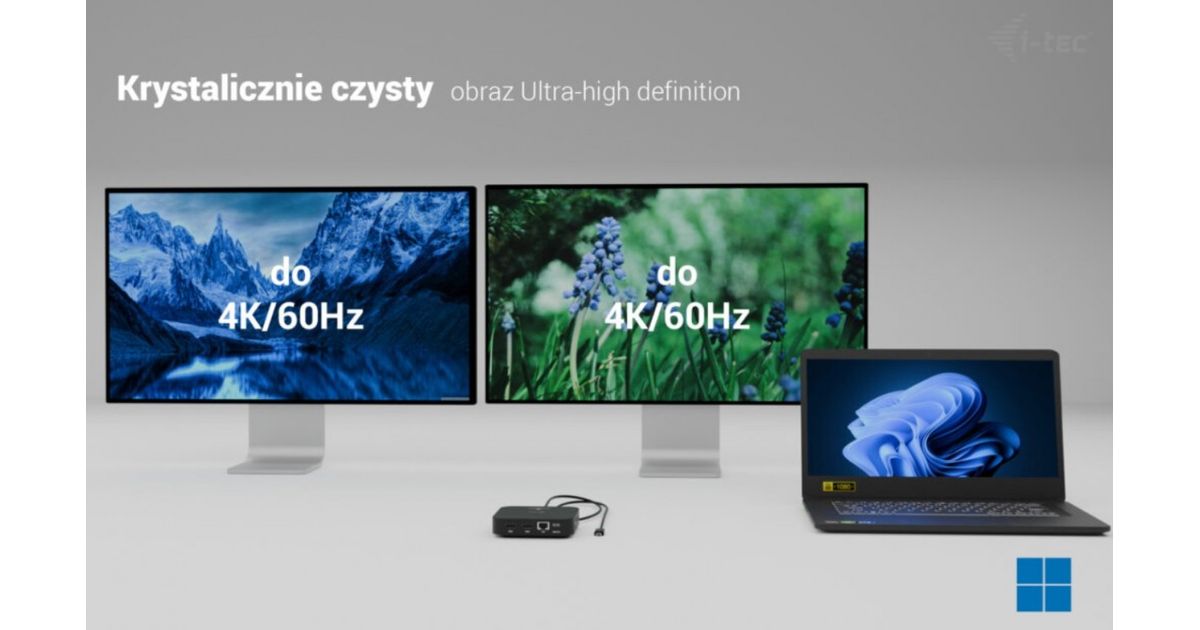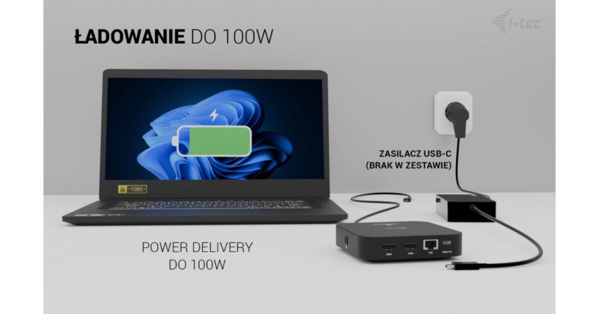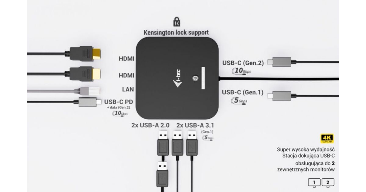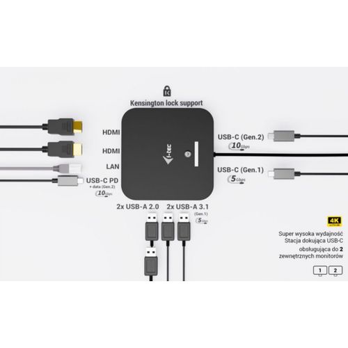 i-tec USB-C Dual HDMI 2xHDMI 4K 60Hz 2x USB-C (10Gbps+5Gbps) 4x USB-A (2x5Gbps) Power Delivery 100W LAN Audio + uniwersalana ładowarka 100W