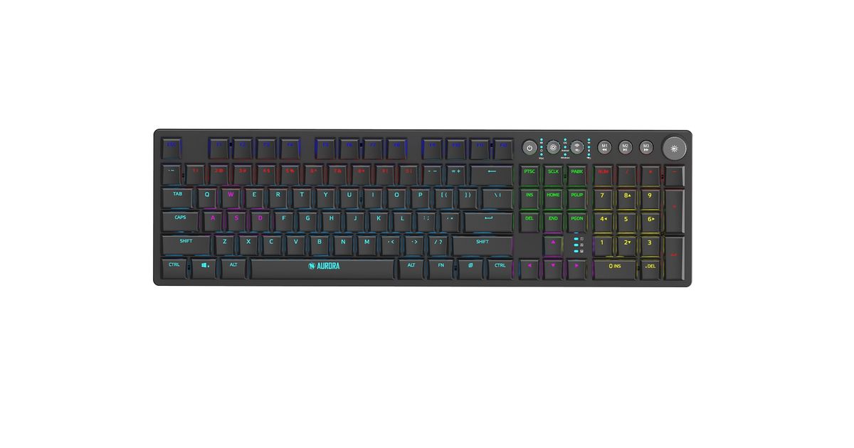 iBox AURORA K-6, Täissuuruses (100%), RF juhtmeta ühendus + Bluetooth, Mehaaniline klahvlüliti, QWERTY, RGB LED, Must