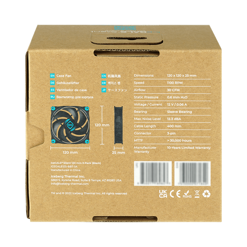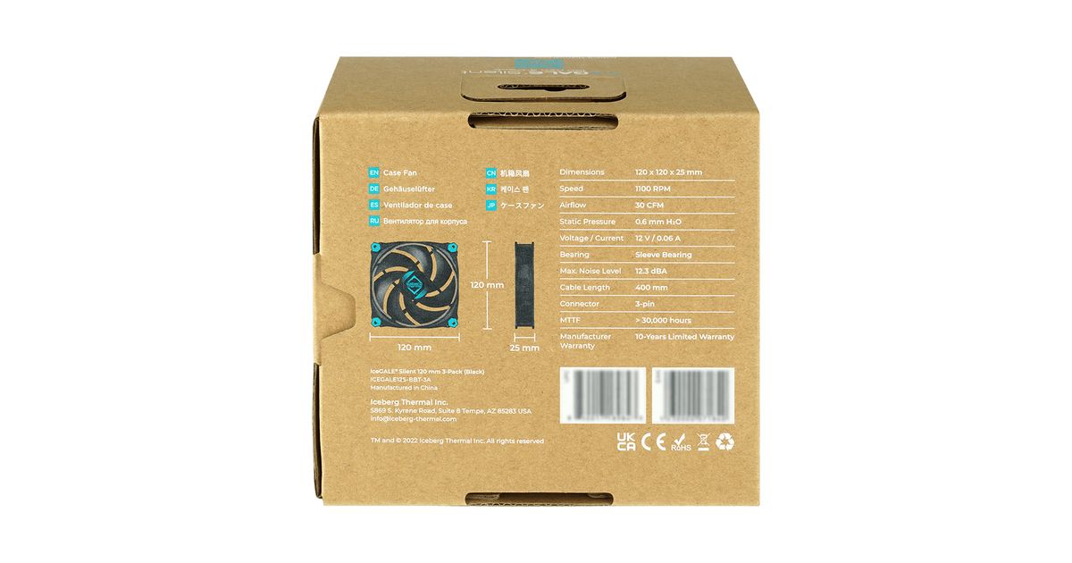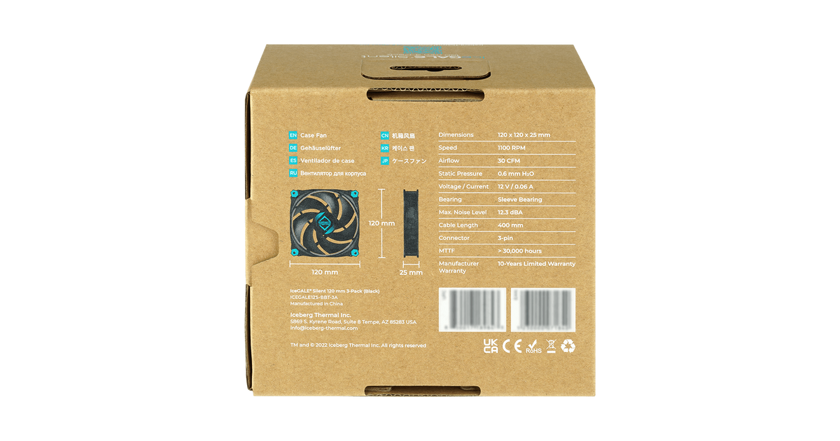 Iceberg Thermal IceGALE Silent, Ventilaator, 12 cm, 1100 RPM, 12,3 dB, 30 cfm, Must