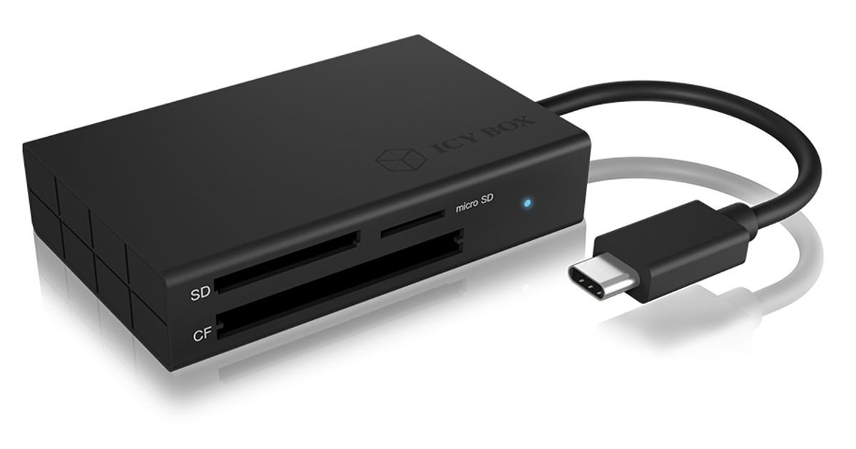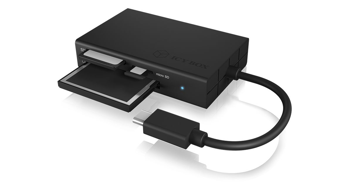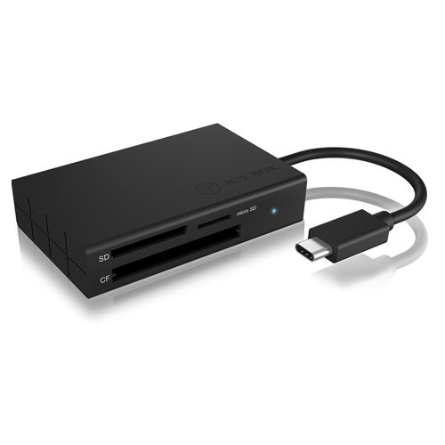 ICY BOX IB-CR401-C3, CF, MicroSD (TransFlash), MicroSDHC, MicroSDXC, SD, SDHC, SDXC, Must, Alumiinium, Plast, USB 3.2 Gen 1 (3.1 Gen 1) Type-C, USB, 49 mm