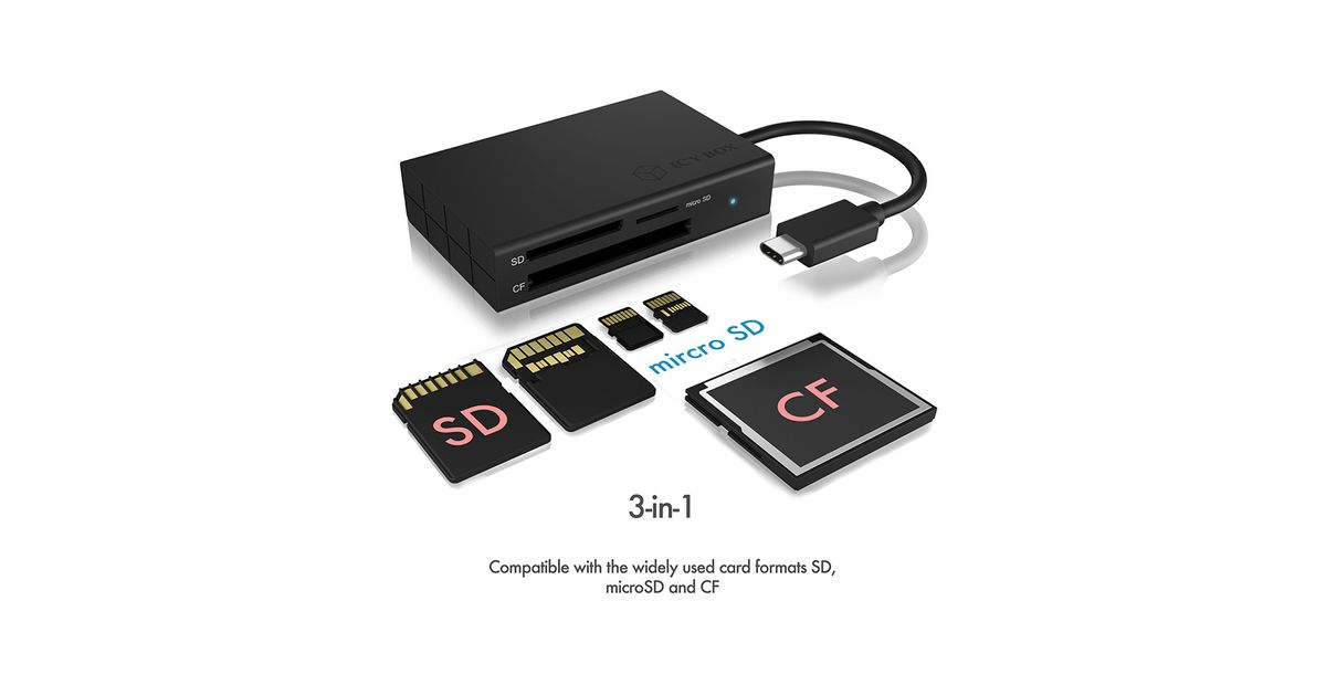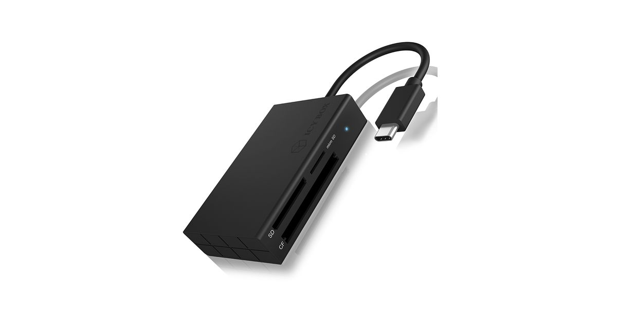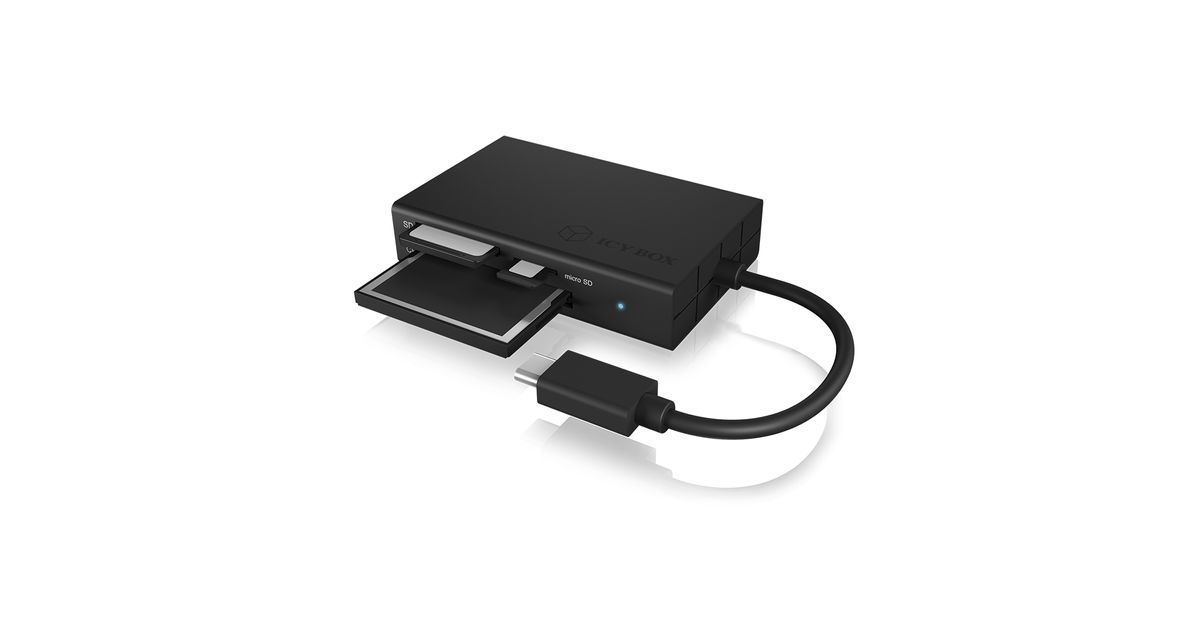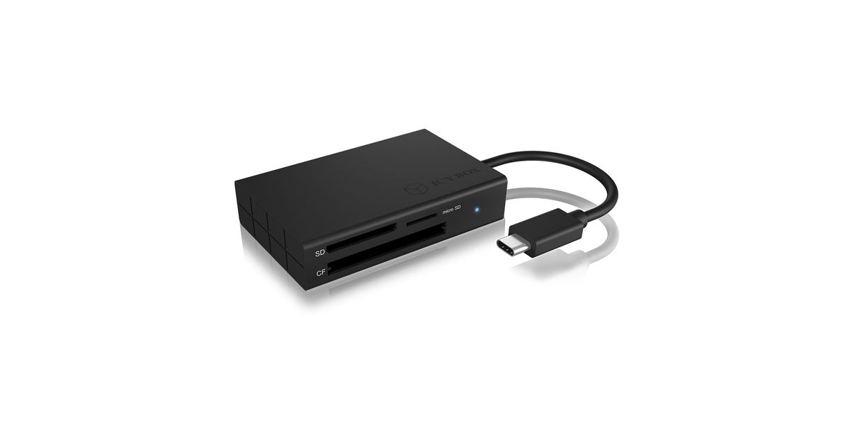 ICY BOX IB-CR401-C3, CF, MicroSD (TransFlash), MicroSDHC, MicroSDXC, SD, SDHC, SDXC, Must, 5000 Mbit/s, Alumiinium, Plast, Windows macOS, USB 3.2 Gen 1 (3.1 Gen 1) Type-C