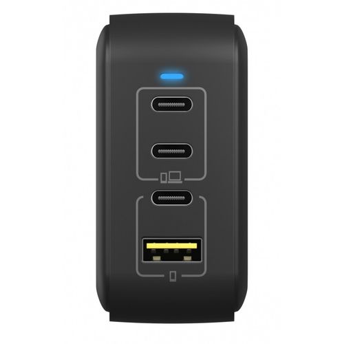 High-Speed Charging: Provides up to 100W of power across three USB-C ports and one USB-A port for fast, simultaneous charging. GaN Technology: Increases efficiency and reduces heat for quicker charging in a compact design. Compatibility: Works with Power Delivery 3.0/2.0 and Quick Charge 3.0/2.0, supporting various devices. Travel Friendly: Compact size and plug-and-play design make it perfect for travel. User-Friendly Features: LED indicator shows charging status for easy monitoring.