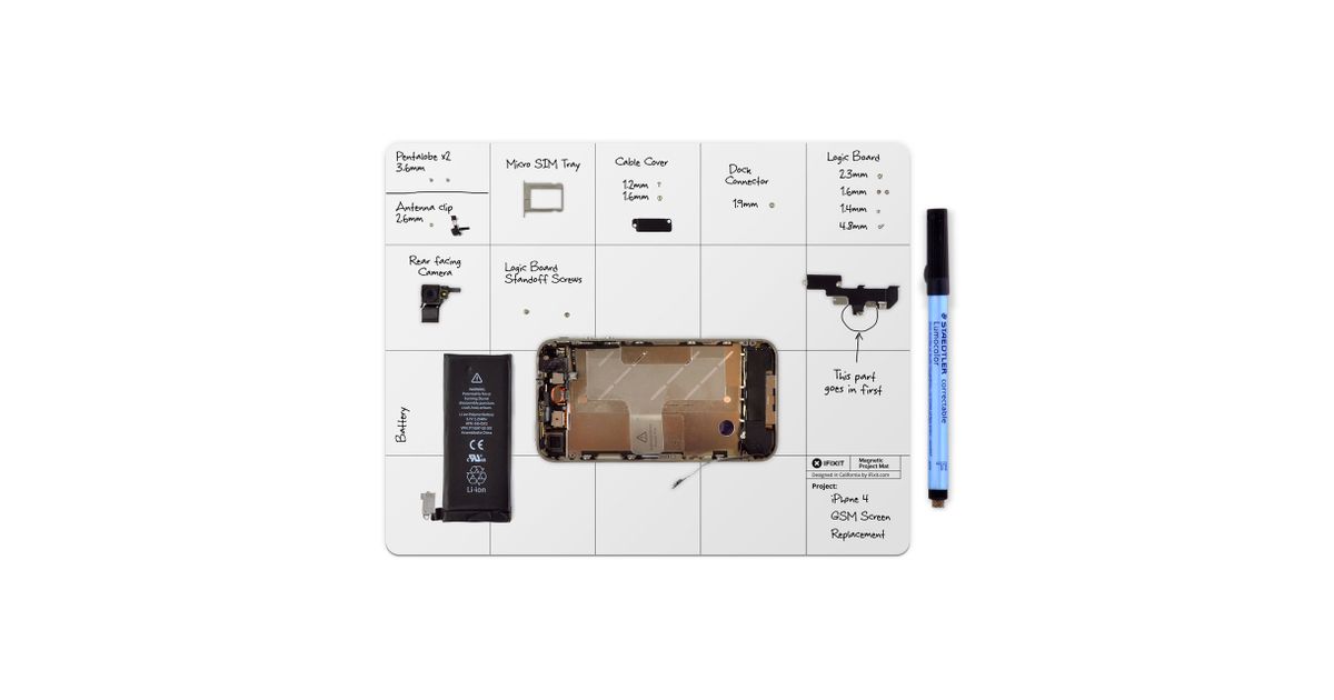 iFixit EU145167-4, Magnetiline matt, Mobiiltelefon/nutitelefon, Valge, 254 mm, 203,2 mm, 2,67 mm