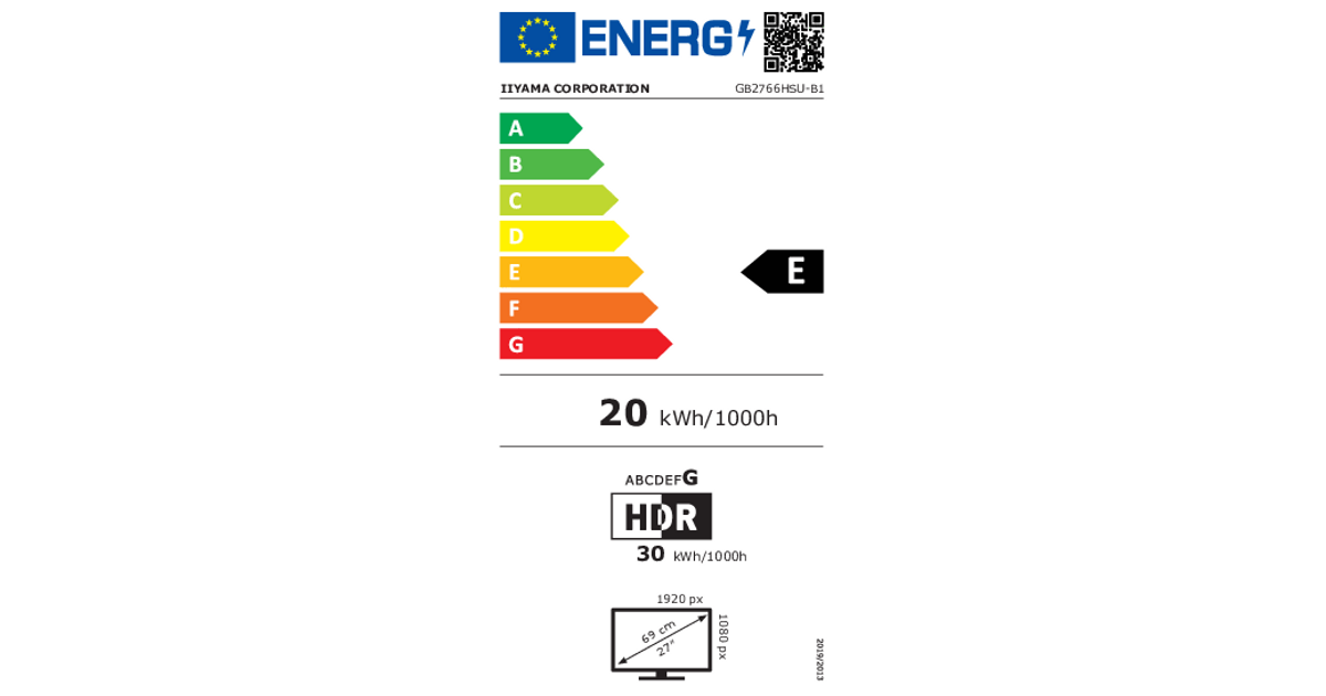 | Energiatõhususe klass (HDR) | G |