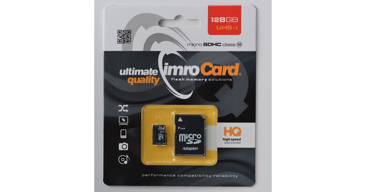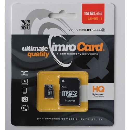 IMRO 10/128G UHS-I ADP, 128 GB, MicroSDHC, Klass 10, UHS-I, Class 1 (U1), Must