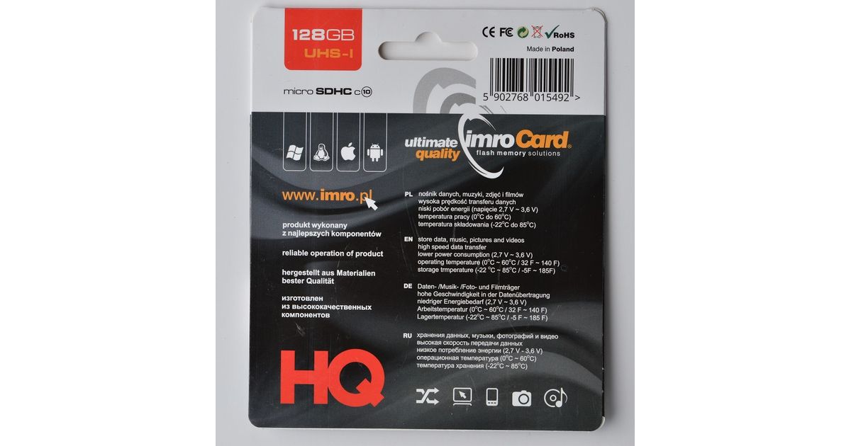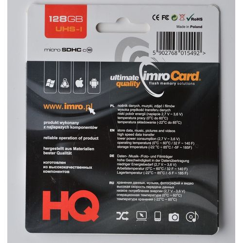 IMRO 10/128G UHS-I ADP mälukaart 128 GB MicroSDHC Klass 10
