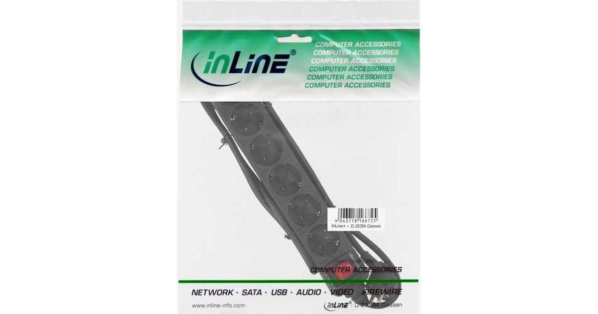 InLine 16465T, 5 m, 6 vahelduvvoolu kontakt, Nurga all, 1,5 mm², Must, Plast