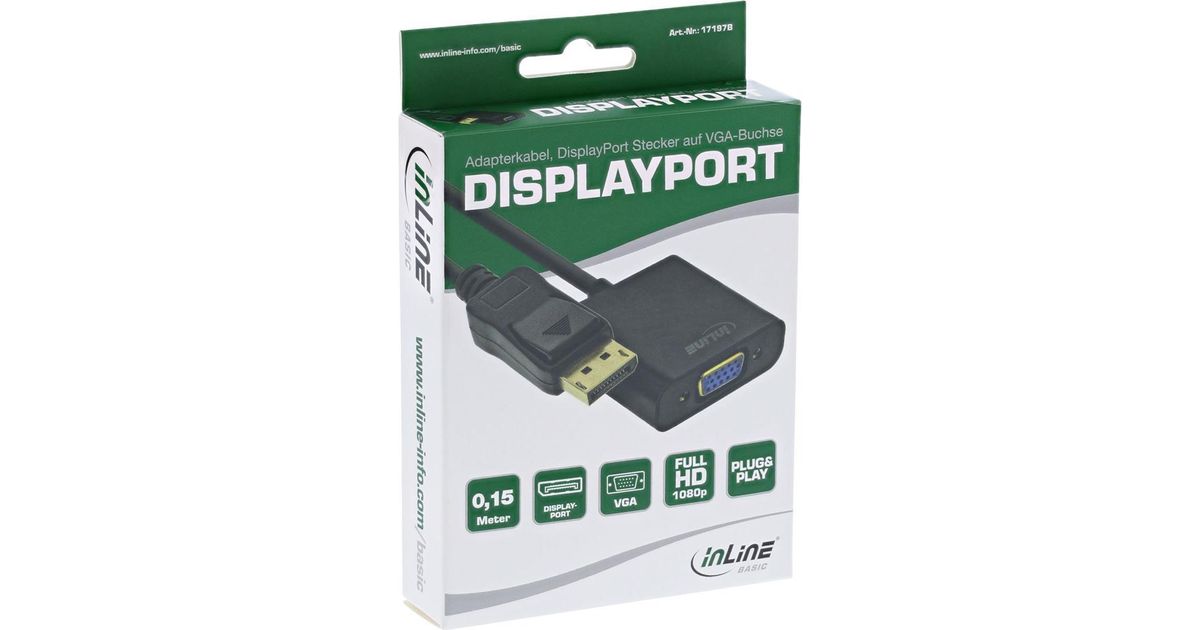 InLine 17197B videokaabliadapter 0,15 m VGA (D-Sub) DisplayPort Must