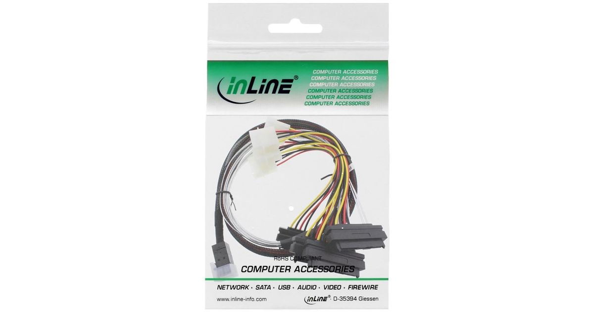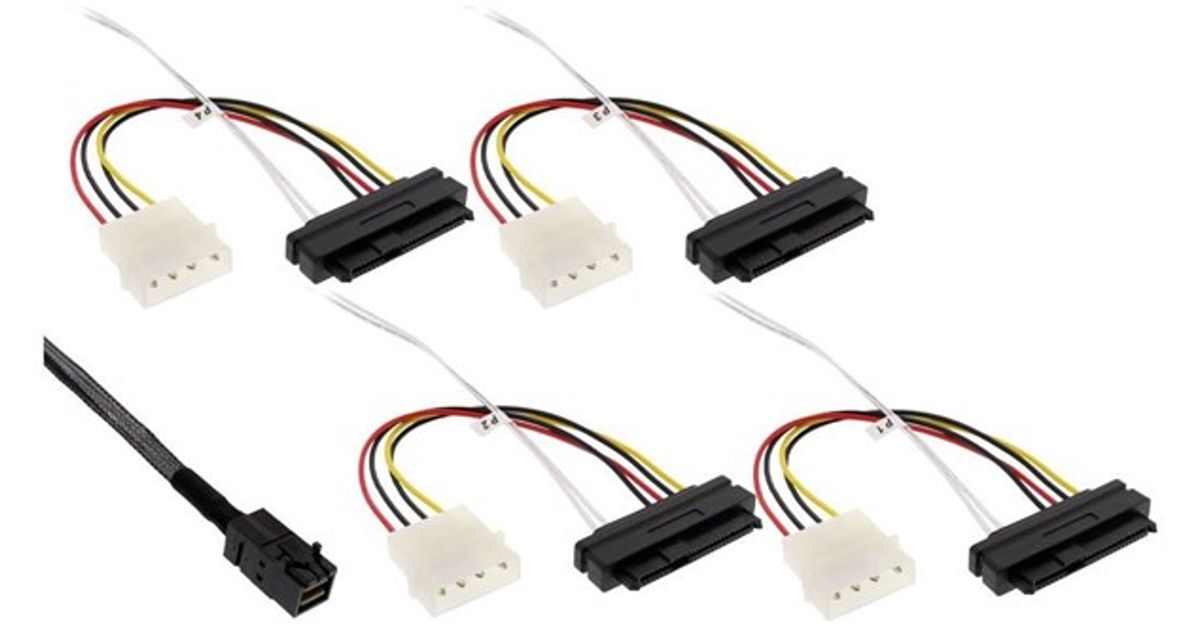 InLine Mini SAS HD 1.0m, 1 m, SFF-8482, 4 x SFF-8482&Power, Meessoost, Must