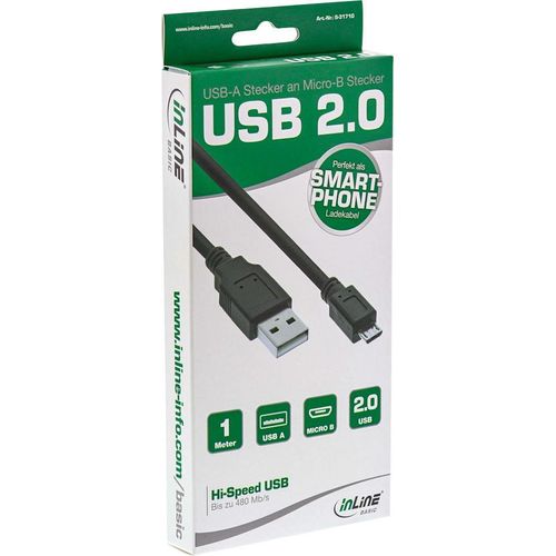 InLine S-31710, 1 m, USB A, Micro-USB B, USB 2.0, Must